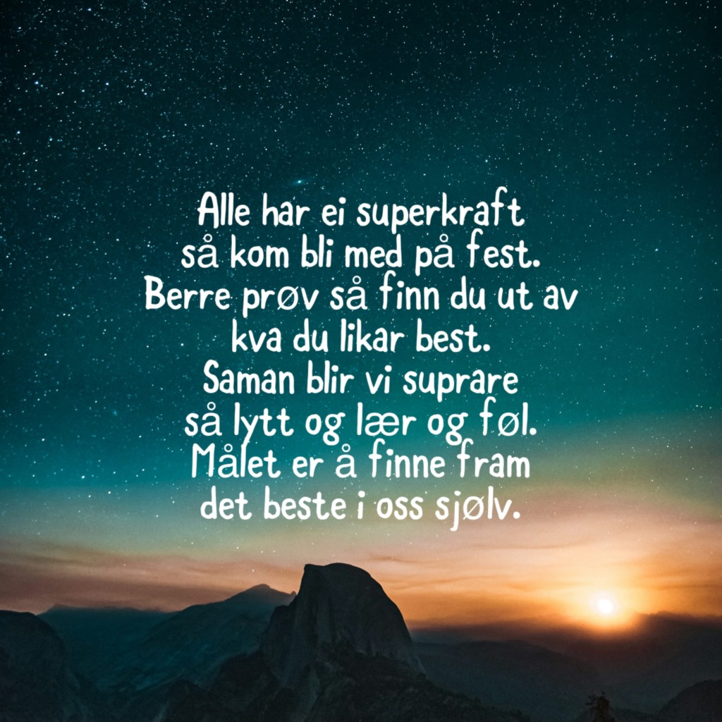 Alt dette har skjedd på under eitt år. Jakta på Superkreftene har gått frå idé til operativ modell med konkrete aktivitetar, sterk lokal forankring og ein ambisjon om å gjere ein forskjell – ikkje berre for barna, men for heile lokalsamfunnet. No står vi klare til å skalere opp, dele erfaringane våre vidare og invitere fleire med på jakta. For vi trur på at når vi utviklar valkompetanse, fellesskap og framtidstru hos barn og unge – då gjer vi ikkje berre Nordfjord suprare. Då gjer vi heile landet betre rusta for framtida.